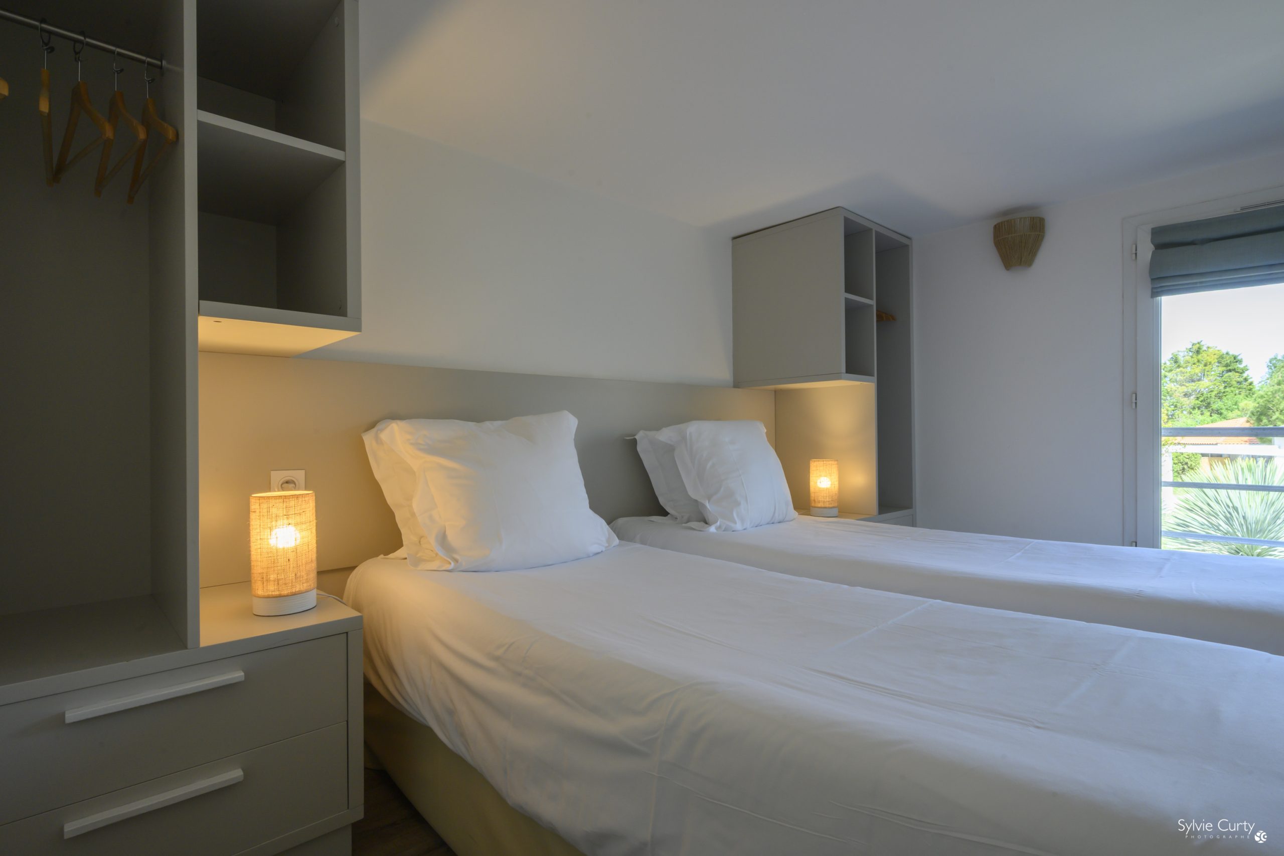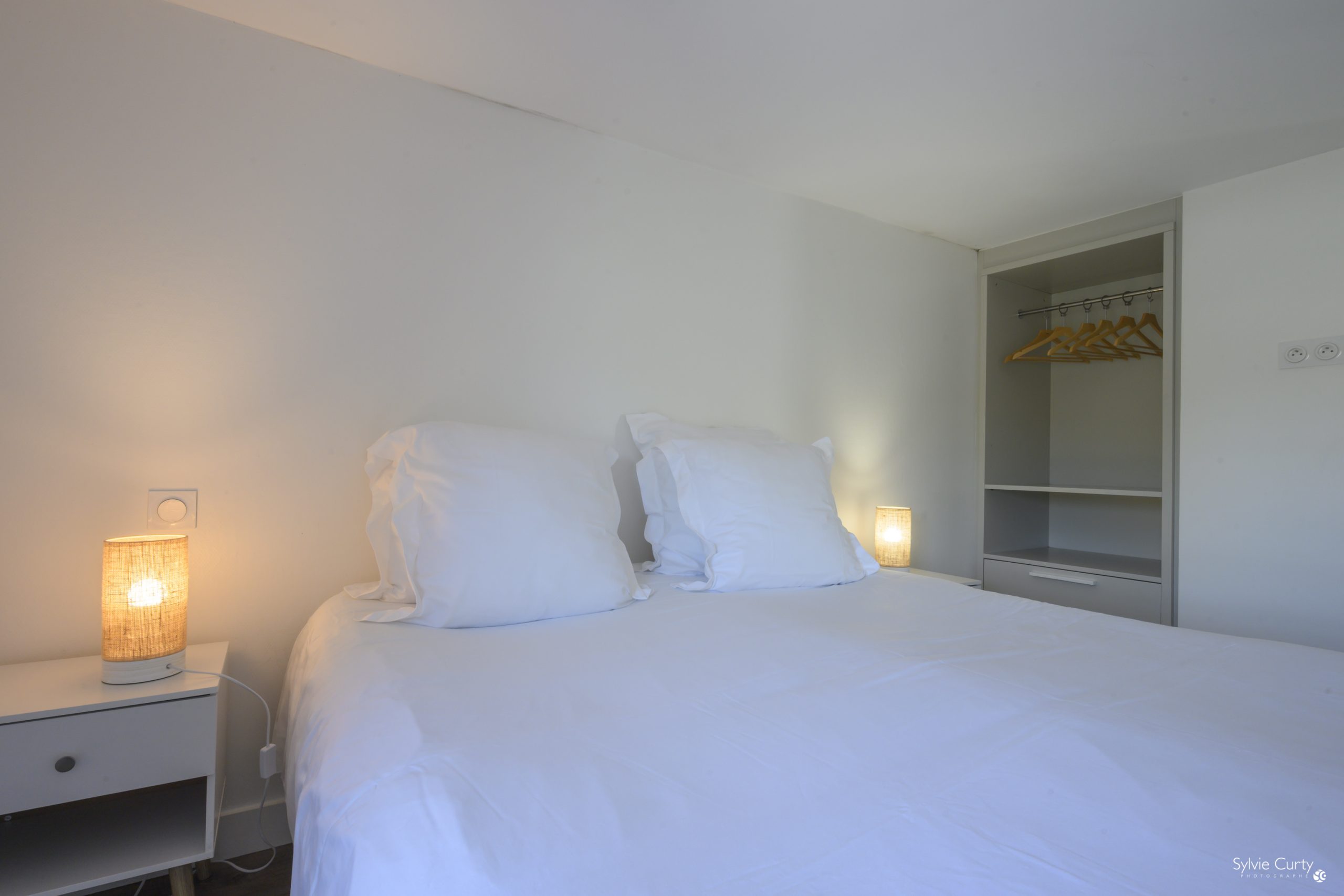 One of the bedrooms is equipped with 1 double bed (160 x 200 cm) and the other with 2 single beds (80 x 200 cm).